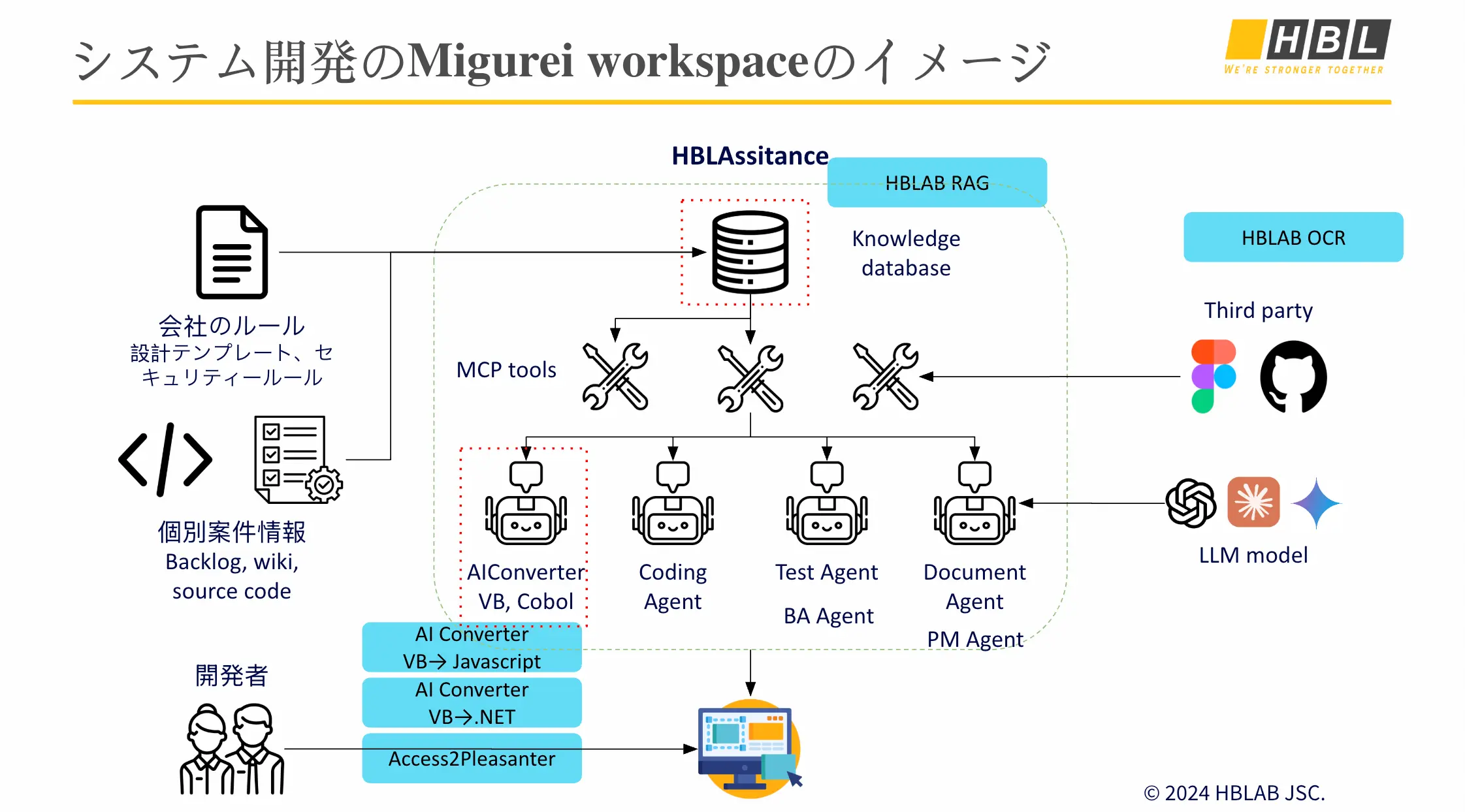 About Migurei ミグレイは、HBLABの子会社であり、AI(人工知能)分野に特化した企業です。 高度な専門知識を持つAIチームが研究開発を行い、AIプロジェクトを実装することで、進行スピードを加速させ、明確なビジネス効果をもたらしています。 リクエストを送信する 業界を越えて多くの有力ブランドから信頼されています。 Our VisionAIの力で、企業の変革をスマートに支援します。AIXレガシーから、未来のデジタル社会へと導きます。 Our Missionミグレイは、AIの力によって、ビジネスモデル、人材、文化、システムなど、企業のあらゆる側面を最適化し、包括的な変革を実現します。 ミグレイは、AIの力によって、ビジネスモデル、人材、文化、システムなど、企業のあらゆる側面を最適化し、包括的な変革を実現します。 業種別AI活用 AIの力で、企業の変革をスマートに支援します。AIXレガシーから、未来のデジタル社会へと導きます。 小売向けAI 製造業向けAI 教育向けAI 医療向けAI AIソリューション AIの力で、企業の変革をスマートに支援します。AIXレガシーから、未来のデジタル社会へと導きます。 データ基盤構築・データ分析 データ分析戦略のコンサルティングData Lake / Data Warehouseの設計・構築(AWS、Azure、GCP対応)レポート構築ビジネストレンド予測 モデル開発 モデル学習のためのデータ収集とアノテーション需要予測、顧客セグメント、行動分析へのML活用画像・音声・自然言語(LLM)処理企業向けの生成AI活用やLLMのファインチューニング AI-Agent 開発 既存アプリケーションの活用:OpenAI Operator、Cursor、GitHub Copilotローコード/ノーコード基盤での柔軟なカスタマイズフルカスタム開発:OpenAI Agent、AutoGen、Google ADK、MetaGPT などを活用 MLops 学習・デプロイ自動化:SageMaker、Azure ML、Vertex AIモデル監視:Model Monitor、Azure Monitor、Vertex AIバージョン管理:S3、GCS、Blob+ML Registry安定運用:Docker、K8s+CodePipeline、DevOps、Cloud Build AI PRODUCTS AIの力で、企業の変革をスマートに支援します。AIXレガシーから、未来のデジタル社会へと導きます。 リクエストを送信する M-Workspace 社内向けAIツールエコシステム – 統一されたワークスペースでの一元管理AIによる自動化とプロセス最適化でプロジェクトの推進を加速開発者、PM、BA、テスターなどチーム全体の生産性を向上持続的な競争優位性の構築 M-RAG 業務負荷を軽減企業ニーズに応じた柔軟なカスタマイズ多様なデータ形式に対応Low-code基盤に容易に導入可能 M-OCR 高精度認識:印刷98%以上、手書き(日本語・韓国語・ベトナム語)95%以上クラウド・エッジ・モバイルなど多様な環境に対応文字認識、画像分類、業務データ抽出を実現 M-Avatar 顧客・従業員体験を向上顔・音声クローンによるリアルタイム対話(24FPS以上)CS対応、人事、研修など幅広いシーンで活用 解決すべき課題 ミグレイはどのような課題を解決できるのか? 1. タイムトゥマーケット (市場投入までの時間) 導入遅延で売上・シェア喪失リスク 2. レガシーシステム 旧システムは遅く、改善が困難。ベンダーのサポート終了、旧技術を理解する人材不足 3. ベンダーロックイン 自社内に技術・業務知識を持つ人材が不在。ベンダー変更が難しく、コスト・時間・リスク増大 4. 業務効率化 Excel・紙管理で遅延、拡張性不足 無料相談はこちら リクエストを送信する なぜ “Migurei” を選ぶのか 「Migurei」の強み 主な特徴 50名以上のAI専門エンジニアがR&Dから開発・運用まで一貫対応日本の有名大学教授による学術アドバイザー体制で技術力を強化Kaggle Expert(上位0.5%)のAI Tech Leaderが率いる開発チームワンチーム型共同開発でAI人材不足を解消し、最大40%のコスト削減を実現高品質×競争力のある価格でビジネス成長を支援AI人材のスキルレベル: Level 1:XX% デフォルトの自動補完や既存コードのコピー&ペーストなど、基本的な機能のみを使用。 Level 2:XX% ツールのインストール・設定が可能で、簡単なプロンプトを作成し小規模タスクを完了できる。 Level 3:XX% 基本的なプロンプトエンジニアリングに精通し、AI生成コードのレビュー・編集・統合を迅速に行う能力を持つ。 Level 4:XX% AI生成コード/結果の品質やリスクを評価でき、AIと協働して複雑かつ多面的な課題を解決できる。 Level 5:XX% 高度なプロンプトエンジニアリング技術を駆使し、複雑なワークフローの自動化・最適化を実現。 AIツールのカスタマイズや拡張も可能。 進捗 御社に課題特定から導入まで完全サポートします ステップ1 コンサルティング ヒアリング 課題特定 提案 ステップ2 データ収集 タグ付け データ受渡 データ収集 タグ付け ステップ3 PoC開発 モデル構築 新技術研究 Try & Errorで繰り返す ステップ4 開発 ステップ5 運用・RPA システム開発 RPA開発 主要メンバー 専門チーム 私たちは才能にあふれ、活気に満ちたチームを擁しています。 福田 哲平 ヨーロッパでAI修士課程を修了し、LLMやデータ分析に携わる HBLABでAI戦略リーダーとして活動 教育・医療・モビリティ分野のプロジェクトを推進 OCRによる自